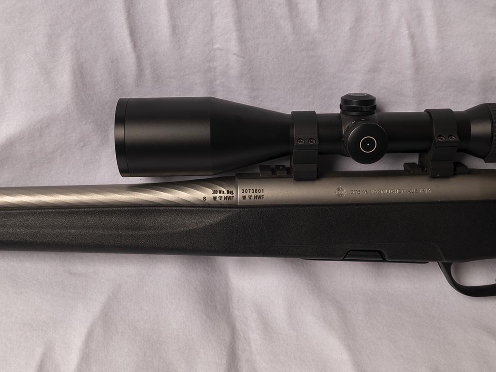 Steyr Mannlicher Pro Hunter, 300WM, inox, con mira Schmidt Bender 3-12X50, excelente estado y muy poco uso.