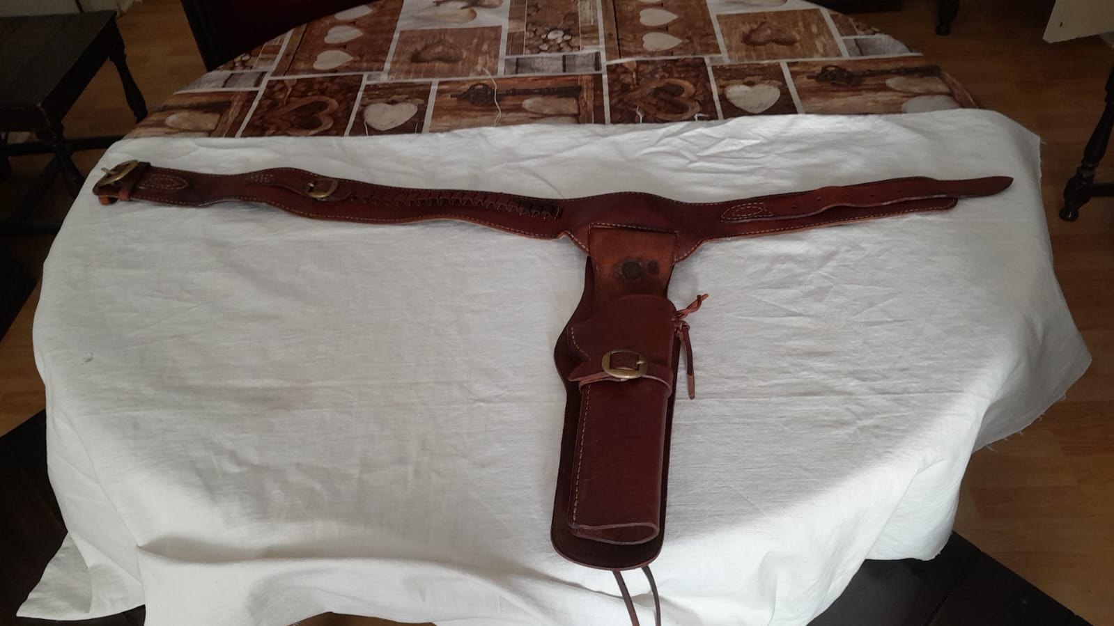 Buenas tardes, para que calibre es el cinturon? Entrara un single action de 7,5 pulgadas? Tengo una funda similar que mide desde el guardamonte hasta donde termina aprox 25 cms. Saludos y gracias